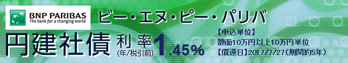 最低申込金額は10万円、利率は1.45%(税引前)、償還日は2017年7月27日と約5年物となっています。