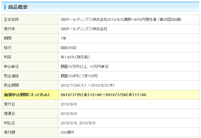 第24回SBI債が販売開始となったのが7月4日でしたので、1ヵ月もたたない内に第25回が発売される形となります。