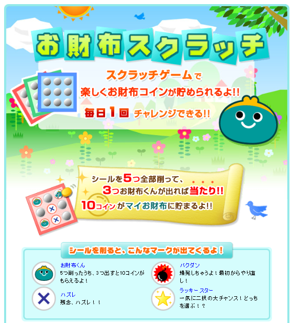 お財布スクラッチは、お財布.comのPC版から参加できるゲームです。