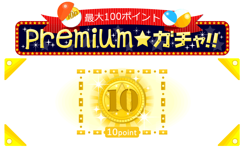 プレミアムガチャは、5ポイント、10ポイント、100ポイントのいずれかが貯まるゲームです。
